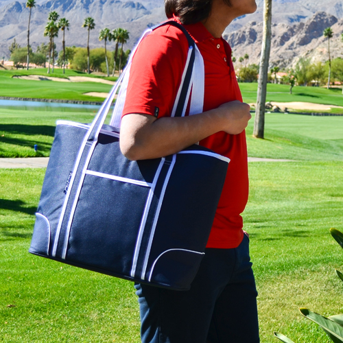 30 Can Capacity. Stylish, Thermal Shield™ insulated, with waterproof PEVA lining that is perfect for picnics, outdoor events and trips to the market. Zippered main compartment. Shoulder straps for easy carrying. Designed in the USA. Lifetime Warranty.